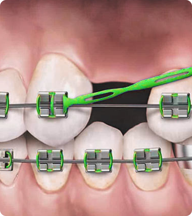 Brackets are bonded to each tooth and connected by archwires and elastic ligatures. Adjustments every 4–6 weeks apply gentle, continuous force to guide teeth into alignment.